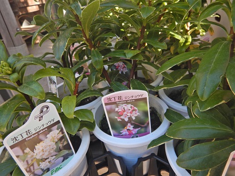 こちらも春が待ち遠しい『沈丁花』♪香りのする花木の中で、有名3銘木のうちの一つ!!(勝手に名付けました(^^))香りのいい木は数あれど、道路歩いてて「あれ?このお花の香り、もうこの時期なんだなぁ…」って感じるのはクチナシ、沈丁花、キンモクセイだと思うんですよ(*´ω`*)春になると案外出回ってなくて探すんですけど、赤花と白花と両方あったので、入れてみました(*^-^*) ちなみに、沈丁花は、木の性質的に、5年くらいで急に枯れてしまう事が良くあるそうです(*_*)コバタケでも背丈くらいまで大きくなってた木がいきなり枯れた年があってびっくりしました( ;∀;)案外、自分で忌地(いやち)にしちゃうみたいで、どうしようもないみたいです。大きい木がある家は、もしもの時のために挿し木なんかで子株を作っておくと良いみたいですよ(*^-^*)